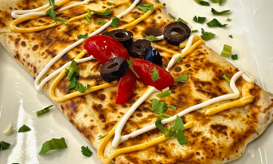 Parfois, la simplicité est la clé. Cette crêpe, inspirée des traditions les plus pures, est simplement garnie de beurre fondu, de sucre cristallisé et d’un filet de jus de citron frais. Le contraste entre le sucré et l’acide est un délice intemporel qui rappelle les goûters d’enfance.